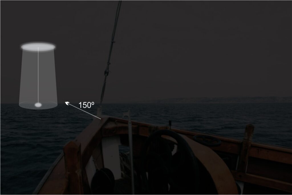 Após alguns minutos, a luz se aproximou ainda mais e permaneceu a uns 20 metros de altura sobre o mar e uns 20 metros de distância, o que exigiu uma manobra que quase parou o rebocador. Um detalhe que chama atenção no depoimento colhido é que a luz estava com algo preso, descrito como um tipo de cabo ou corda. Em determinado momento, a luz chegou mais perto e permaneceu a 45º da proa, soltando o “cabo” e iluminando com intensidade a água.