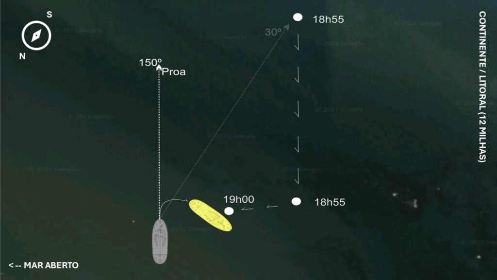 A investigação aponta que o contato via rádio com a Capitania demorou entre 30 e 40 minutos após o primeiro avistamento, o que coloca em dúvida o que realmente aconteceu e diz ainda que a posição passada diverge em 82 milhas da real. Isso comprovaria a desorientação dos homens no mar.