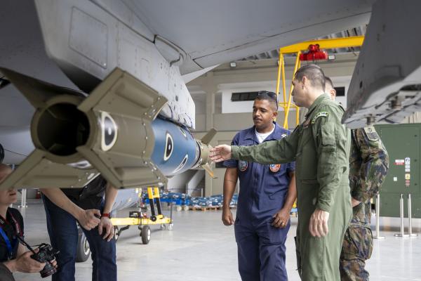 O release para a imprensa não descreveu qual foi a bomba utilizada na prática, contudo, deixou a impressão de ser apenas armamento inerte, ou seja, sem explosão detectada.