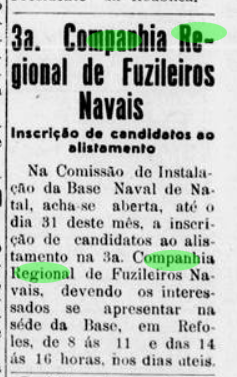 Voltando a história do batalhão, em 07 de março de 1963, em face da reorganização do Corpo de Fuzileiros Navais, a 3ª Companhia Regional foi reestruturada e passou a denominar-se Grupamento de Fuzileiros Navais de Natal (GPTFNNA).