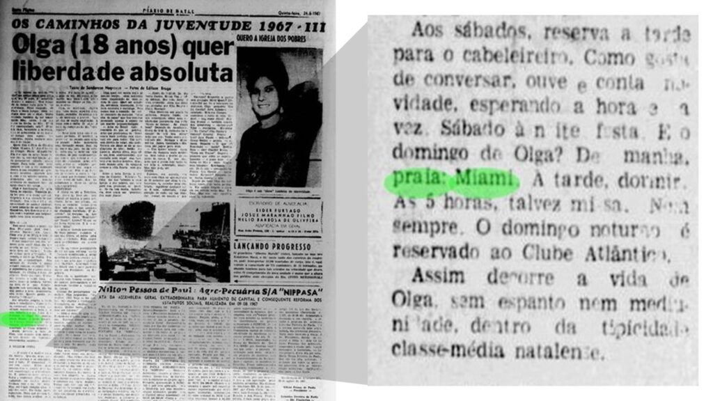 Pesquisando em jornais da época, o nome “Miami” associado ao trecho da praia de Areia Preta, aparece pela primeira vez mais de 20 anos após saída dos norte-americanos, em 24 de agosto de 1967, quando o colunista social do Diário de Natal, Sanderson Negreiros descreve o perfil de uma jovem identificada como Olga de Olveira Cunha, 18 anos, a qual tinha o costume de frequentar a praia de Miami aos domingos.