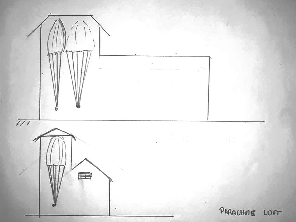 Na prática, é um armazém com um torre onde os paraquedas eram colocados pendurados na parte mais alta da edificação, numa espécie de torre, e ali era estirado antes de serem dobrado e colocados nas bolsas ou mochilas de salto.